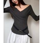 ニット セーター クロスデザイン深Vネックニットトップス レディース