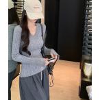 ニット セーター 深Vネックリブ編みニットトップス レディース