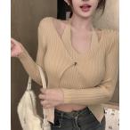 レイヤード風リブニットトップス レディース