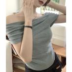 tシャツ オフショルダードレープ長袖トップス レディース
