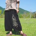 エスニック ワイドパンツ ラムナミプリント 4color シンプル コットン素材 さらっと肌ざわり ガウチョパンツ サルエル ロンスカ カジュアル