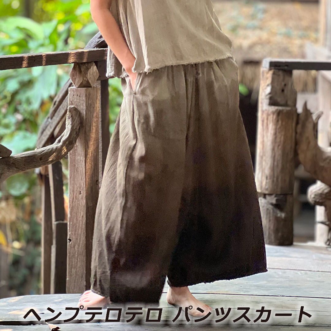 asana ヘンプ100%テロテロ パンツスカート<草木染めグラデーション>レディース 女性 麻 エスニック アジアンファッション リゾートコーデ