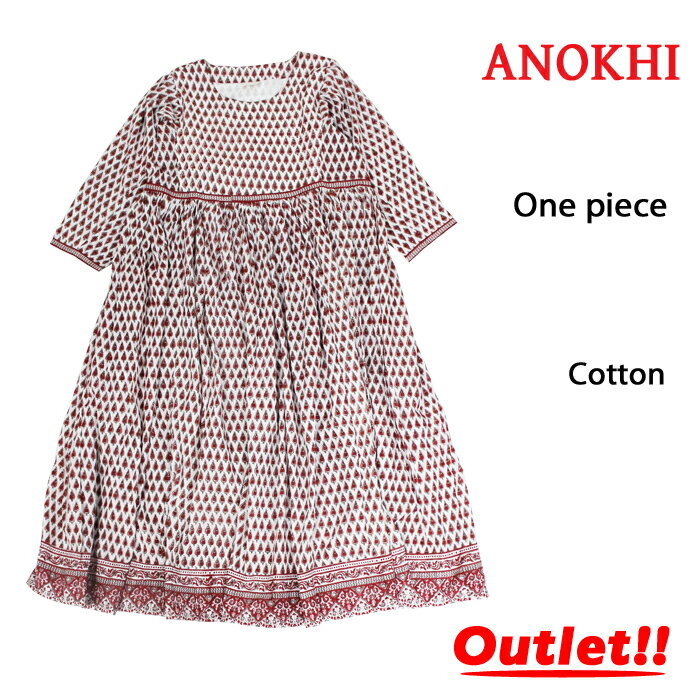 <アノーキ>コットン シャツワンピース: レッド-ホワイト 各サイズ(インド表記S、L、XL) / ハンドブロックプリント インド エスニック ファッション ワンピース アジアン Anokhi