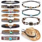 【並行輸入品】カウボーイハットバンド 交換用 ハンドメイド エスニック ウエスタンハット ベルト ターコイズ付き パナマ・ランチャー・フェドーラ