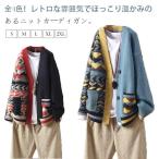 秋 ニットカーディガン 配色 エスニック柄 カラフル カーディガン Vネック ポケット付き 羽織り 寒さ対策 ライトアウター 春 ゆったり