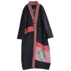 ジャケット メリノウール シルク刺繍 グリーン インド製 裏地あり ハンドメイド 高級感 伝統工芸 レディース エスニック ファッション 花柄 ロング丈 アウター