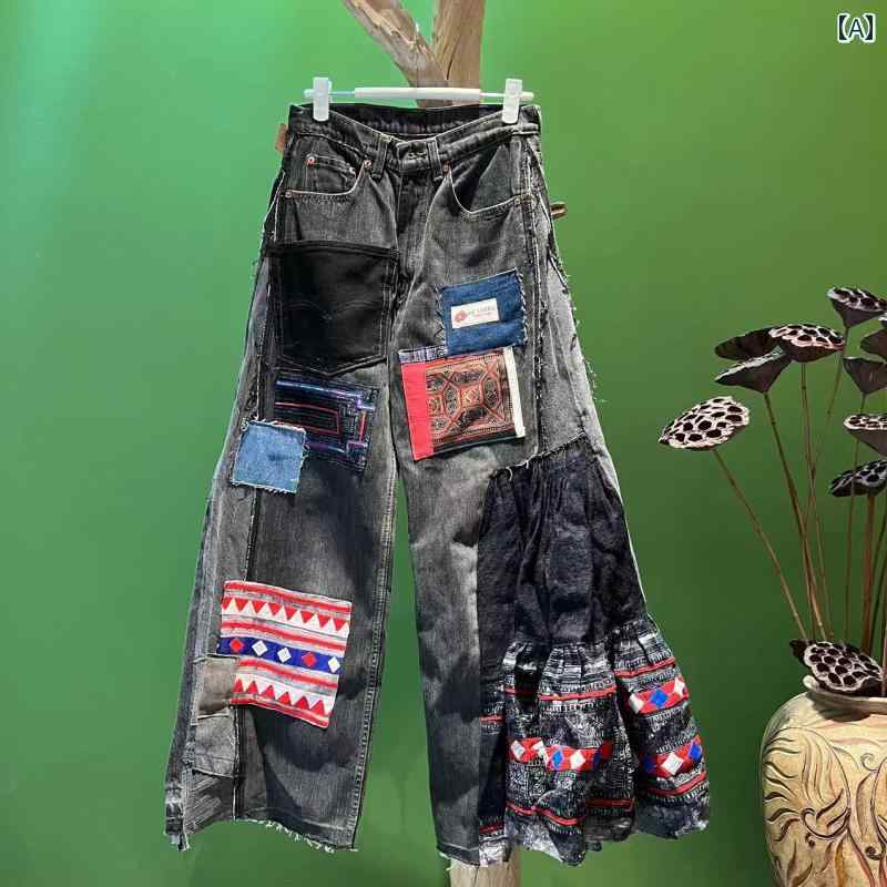 ジーンズ デニムパンツ ストレートジーンズ パッチワーク エスニック エキゾチック カジュアル クール レディース