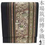 名古屋帯 リサイクル 本場筑前博多織 正絹 八寸 全通 博多織 博多帯 黒 渡来間道 壁画風 カジュアル 中古 仕立て上がり みやがわ sb55256