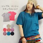 アジアンシンプル☆フレンチスリーブトップス(アジアンファッション エスニックファッション 綿 コットン Tシャツ フレンチT 半袖 無地Tシャツ インナー チュニック プレーンカラー 23ss)