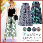 パンツ ワイドパンツ ロング レディース 春 夏 黒 白 おしゃれ 涼しい エスニック レオパード 柄 冷感タッチ ^b400^