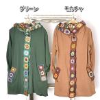 厚手生地 クロシェ フード付き パーカー ワンピース〈コン/モカチャ〉 エスニック 送料無料 綿 100% ネパール製 ラグランスリーブ 妊婦服 マタニティー