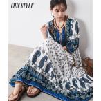 ワンピース エスニックパネルプリントマキシワンピース 「大きいサイズ有」シックスタイル