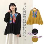 Shanti Shanti プルオーバー カンタパッチワーク レディース 秋冬 長袖 トップス ブラウス パッチワーク 刺し子 刺繍 ロング 無地 インド アジアン エスニック