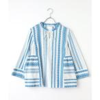 ブラウス シャツ エスニックフラワーフリルブラウス レディース