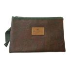 未使用品 エトロ ETRO ポーチ ラウンド ペイズリー柄 ロゴ 茶 ブラウン /AO12 レディース