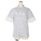 エトロ ETRO ロゴ プリント ストライプ シャツ 半袖 XS 白 青 ホワイト ブルー レディース