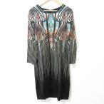 新品同様 ETRO エトロ グラフィックペイズリー柄 シルク ストレッチ 長袖 ひざ丈 ワンピース サイズ40 ブラック系 マルチカラー レディース 古着 中古