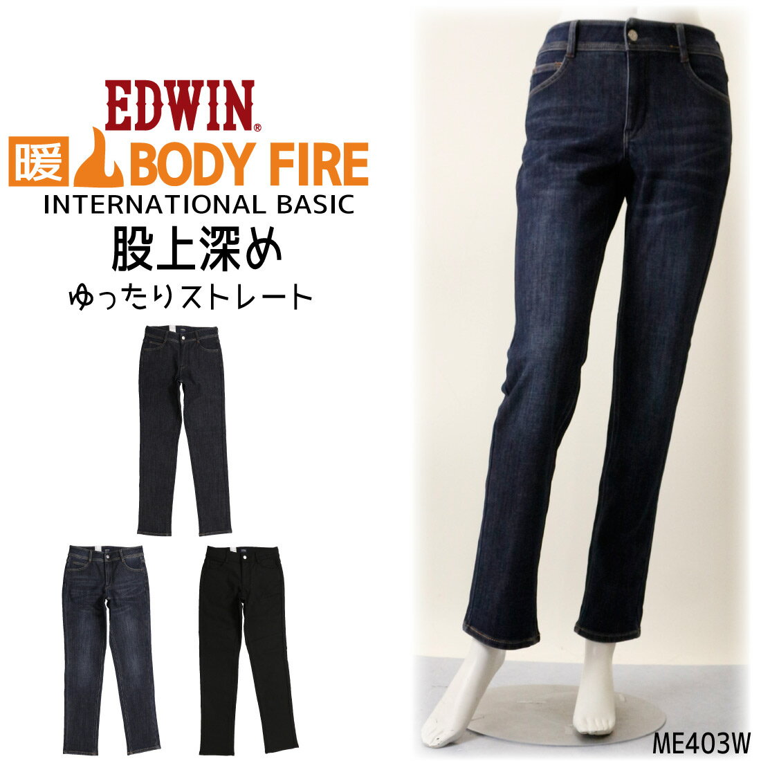 EDWIN エドウィン レディース 股上深め ゆったり ストレート ME403 ストレッチ ジーンズ デニム カジュアル 100 126 116 168 175 156