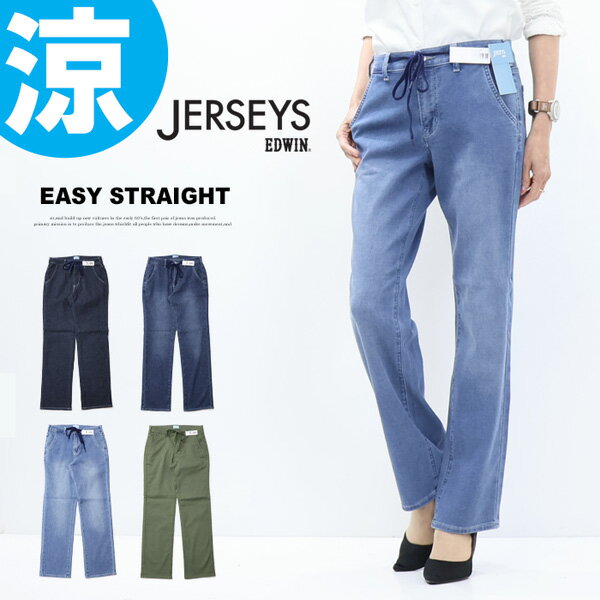 edwin ジャージーズ EDWIN レディース エドウィン ジャージーズ レディース エドウイン ジーンズ レディースイージースリムストレートデニムパンツ レディース デニムパンツ ストレートデニム レディース 美脚ストレッチ デニム ウエストゴム JWE22