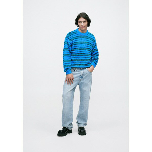 エドウィン レディース ニット&セーター アウター STRIPED HAIRY SWEATER UNISEX - Jumper - blue/aqua/black
