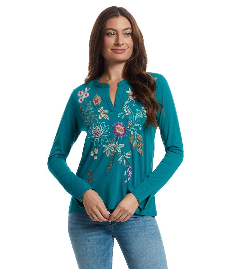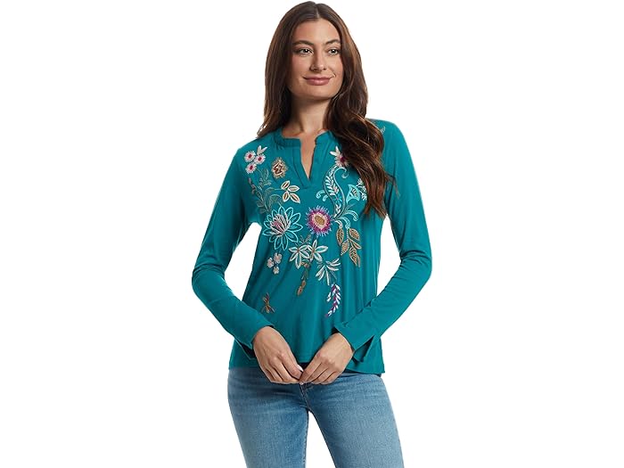 ジョニーワズ レディース トップス シャツ Tシャツ ジャージー Johnny Was Split Jersey Tee - Edwin Deep Lake