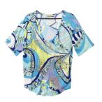 エミリオプッチ Emilio Pucci レディース トップス インナー カットソー 半袖Tシャツ 胸ドレープ プッチ柄 総柄マルチプリントTシャツ ブルー 青 36RM86 36798 009 13A (R50400)【送料無料】【smtb-TK】