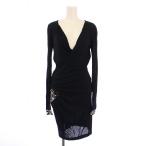 エミリオプッチ EMILIO PUCCI タイトワンピース ドレープ ひざ丈 長袖 Vネック ストレッチ ビジュー 装飾 I40 紺 ネイビー