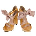 エミリオプッチEMILIO PUCCI エナメル ヒール リボン サンダル ベージュ系 size37 M03027