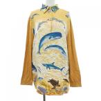 良品△HERMES エルメス ヴィンテージ マルジェラ期 Les Capucines 金蓮花 シルク100% 長袖シャツ オレンジ系 38 フランス製 レディース【中古】