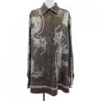古着 HERMES エルメス イタリア製 オールド 総柄 長袖 ニット切り替え シャツ M ブラウン レディース 【中古】 【PD】