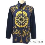 【美品】HERMES エルメス シャツ 馬車とハット ロゴ H プリント サテン シルク100% 長袖 トップス レディース サイズ 42 マルチカラー 仏製