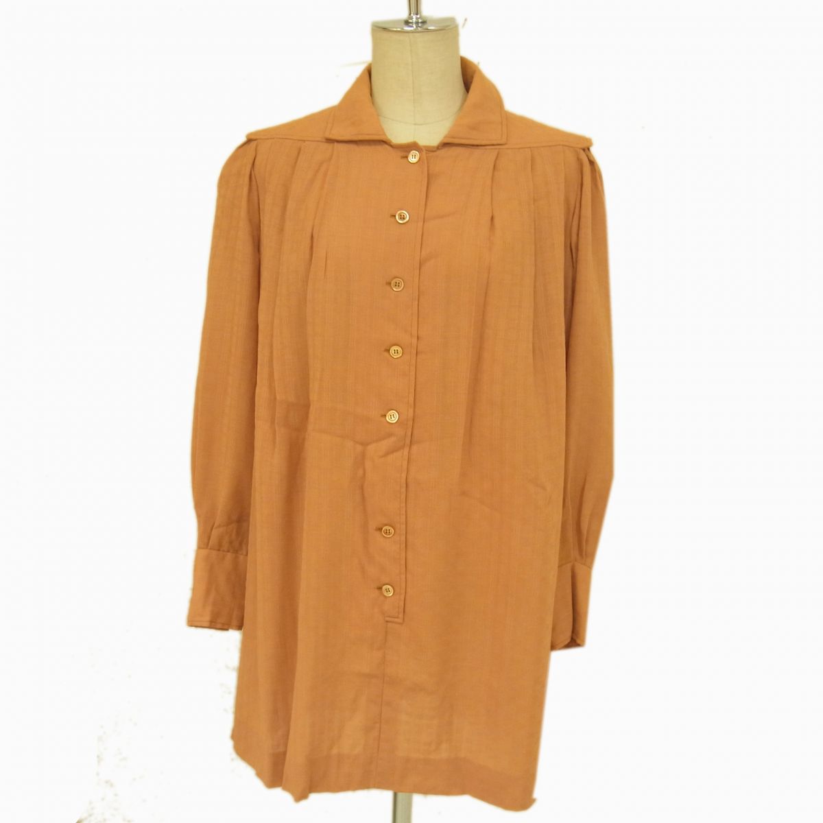 【中古】ヴィンテージ 希少◇HERMES 長袖 シャツ ワンピース ダルオレンジ プルオーバー エルメス レディース レトロ感 フランス製