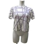 エルメス HERMES マルジェラ期 ボルデュック柄 Tシャツ カットソー 半袖 バイカラー 白 ホワイト 紫 パープル M IBO81