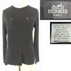 美品★フランス製★HERMES【エルメス】ニット/Wポケット/長袖Tシャツ【レディースL程度/黒/black】薄手/Tops/Shirts◆BJ007-b