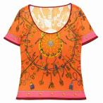 エルメス HERMES ホースヘッド 馬柄 半袖 Tシャツ カットソー 36 オレンジ系 フランス製 総柄 レディース
