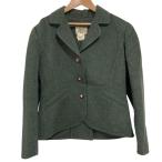 美品 HERMES エルメス カシミヤ100% ウエストマーク テーラードジャケット サイズ42 グリーン レディース 古着 中古