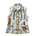 エルメス (HERMES)シルク ジップアップ ベスト ジャケット プリント ヴィンテージ ホワイト 38 ウェア(中古)