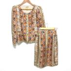 美品 HERMES エルメス CHASSE EN INDE インド狩猟 シルク100% ノーカラージャケット×スカート セットアップ 38 マルチカラー レディース 古着 中古