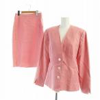 エルメス HERMES スーツ セットアップ 上下 ノーカラージャケット タイトスカート 麻 リネン 長袖 シングル ロゴ 総裏地 3B