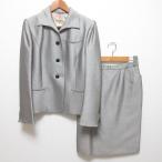 良品 HERMES エルメス ヴィンテージ シルク ジャケット スカート スーツ セットアップ サイズ38 グレー レディース 古着 中古