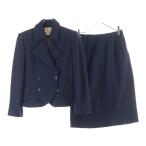 HERMES エルメス 馬車タグ ウール ダブルブレスト スーツ ジャケット スカート セットアップ レディース ネイビー
