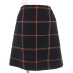 極美品△HERMES エルメス ウール チェック柄 台形スカート ミニスカート ブラック オレンジ 40 フランス製 レディース