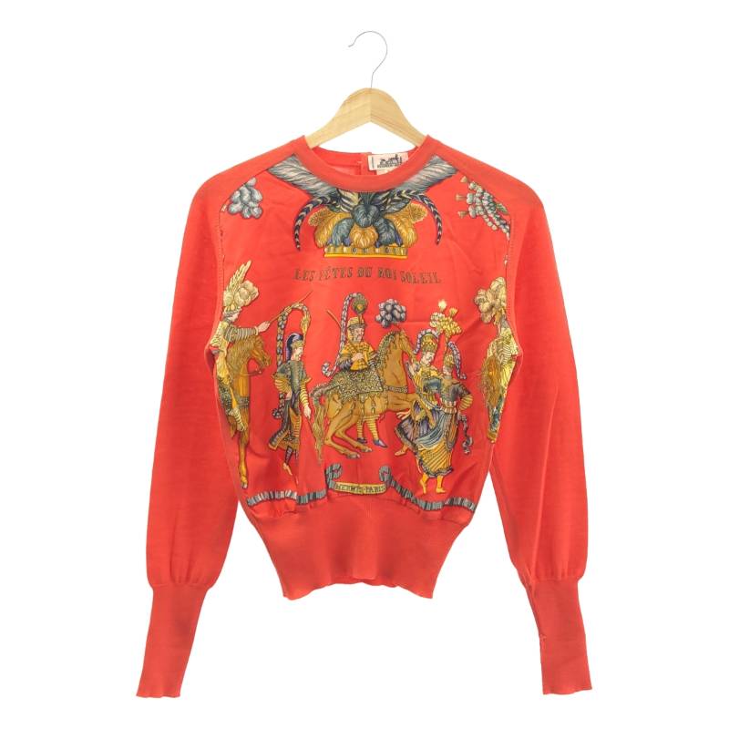 HERMES / エルメス | LES FETES DU ROI SOLEIL 太陽王の祝典 / シルクスカーフ 切替 ウールニット バックセリアボタン | 36 | レッド | レディース