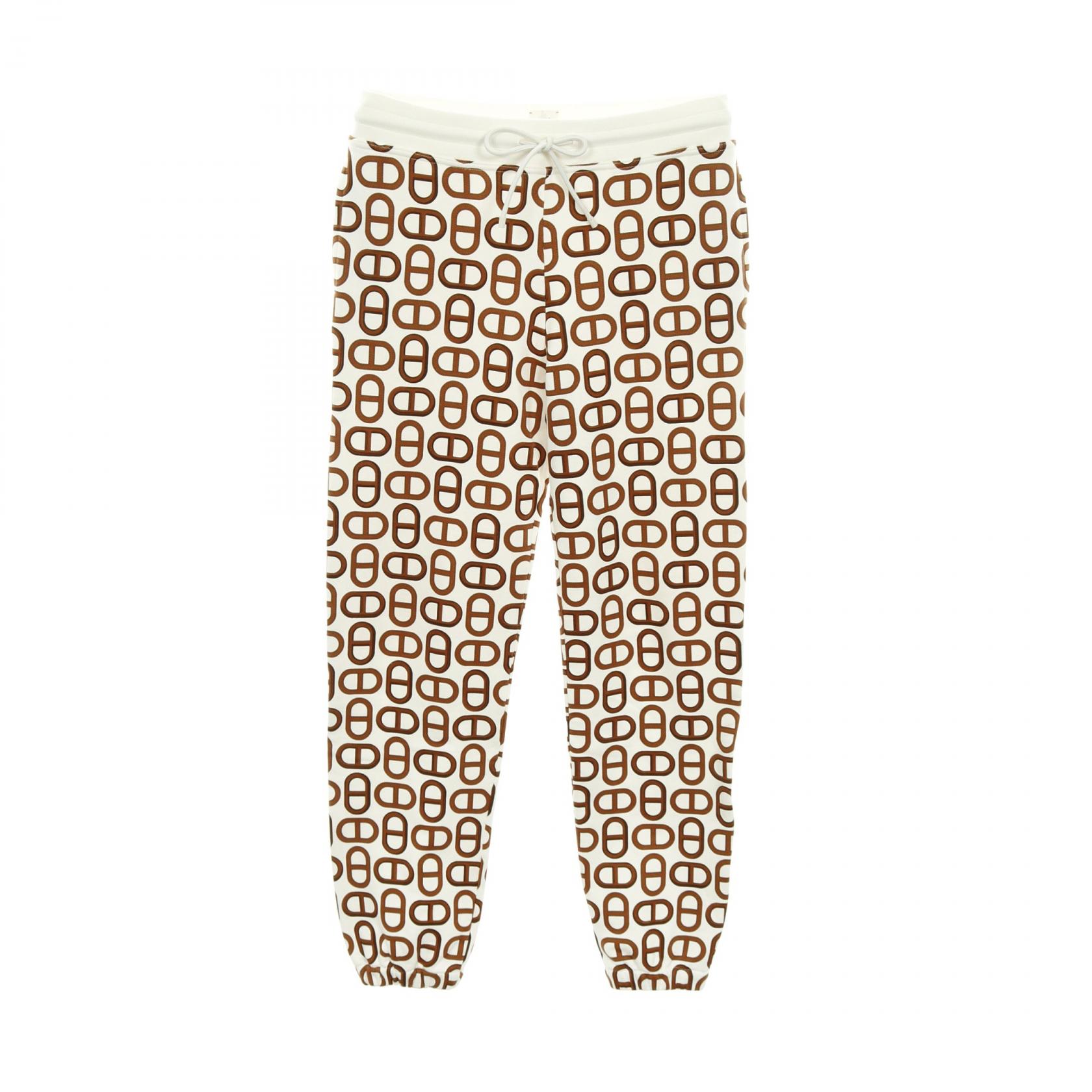 ≪5%OFF&まとめ買い対象≫エルメス HERMES シェーヌダンクル パンツ 衣料品 ボトムス コットン レディース ホワイト系 / ブラウン系 【中古】