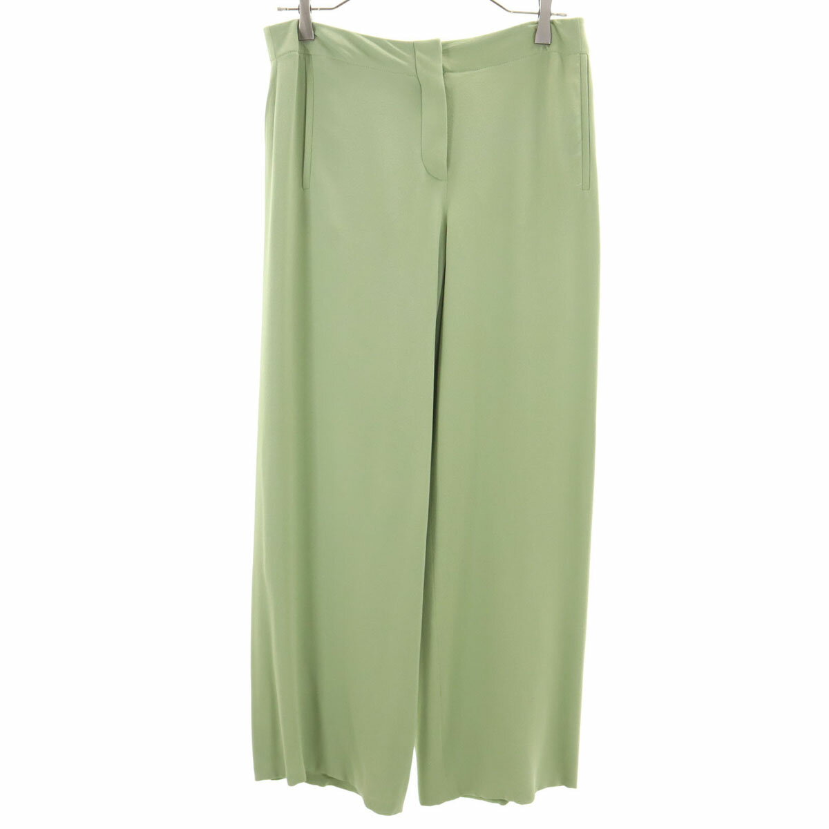 古着 HERMES エルメス フランス製 シルク ワイドパンツ 38 モスグリーン系 レディース 【中古】 【PD】