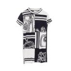 未使用品◎HERMES エルメス 23SS 3E4507DH コットン100% 半袖 Tシャツワンピース ホワイト マルチ 34 フランス製 正規品 レディース