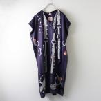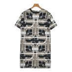 【中古】 エルメスHERMES シルク幾何学柄ノーカラーワンピース オフ黒38【レディース】