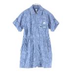 エルメス 25AW キャンディ リブリス 総柄 ワッペン ジップアップ 半袖 ミニ ワンピース ドレス インディゴ/ブルー レディース 5H0555DH