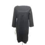 【中古】HERMES エルメス ワンピース カットソー ブラック スクエアネック 刺繍 サイズ34