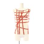 エルメス HERMES リボン柄ノースリーブカットソー タンクトップ L レッド 赤 ホワイト 白 /CX ■OS レディース